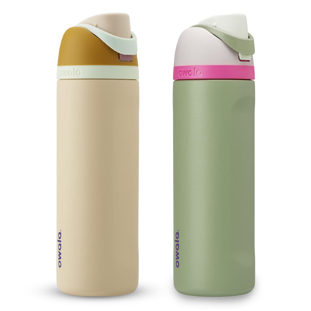 Las botellas Owala cuentan con una capacidad de 710 mL (24 oz). Lo que distingue a estas botellas es su pico patentado FreeSip. Con dos funciones en uno, puedes optar por sorber suavemente a través de la pajilla incorporada o beber rápidamente a través de la amplia apertura. Con un diseño a prueba de fugas y una tapa abatible que se activa con el simple toque de un botón, tu bebida se mantiene segura y accesible. Además, su asa de transporte te permite llevarla contigo a cualquier lugar, desde el gimnasio hasta la oficina o una caminata en la montaña. Incluye 3 piezas por botella (botella, tapón, pajilla)